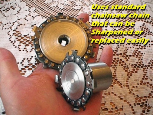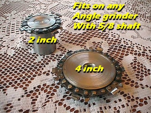 Uses standard chainsaw chain that can be sharpened and replaced, fits any angle grinder with 5/8 shaft, this tool is very dangerous and should only be used by experienced carvers